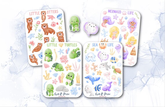 Sea Life Sticker Sheets Bundle Sea Creature Scrapbooking Etsy